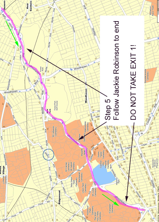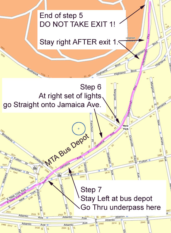 7. Once on Jamaica Ave stay left. There are usually parked busses on the left. This will send you "under" the road.