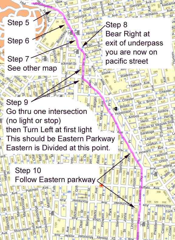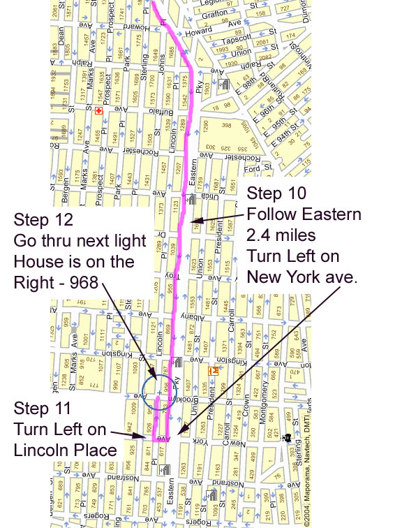 10. Take Eastern Parkway to New York Ave. Turn right on New York Ave. (about 2.4 miles)