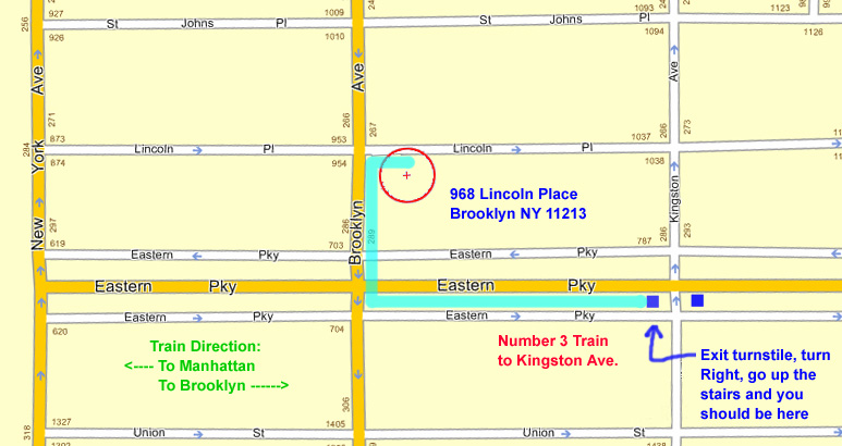 Walk along Brooklyn Ave to Lincoln Place (one block) and Turn Right on Lincoln Place.
